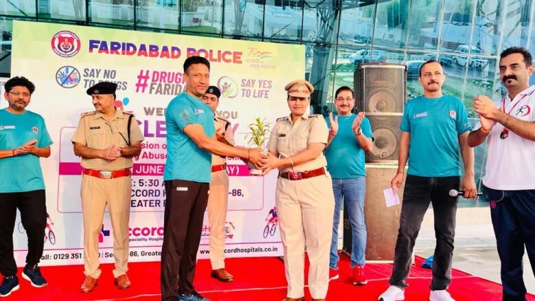 A Cycle Rally Was Organized by Faridabad Police in Association with Accord Superspeciality Hospital and Daksh Foundation on the Occasion of International Day Against Drug Abuse & Illicit Trafficking